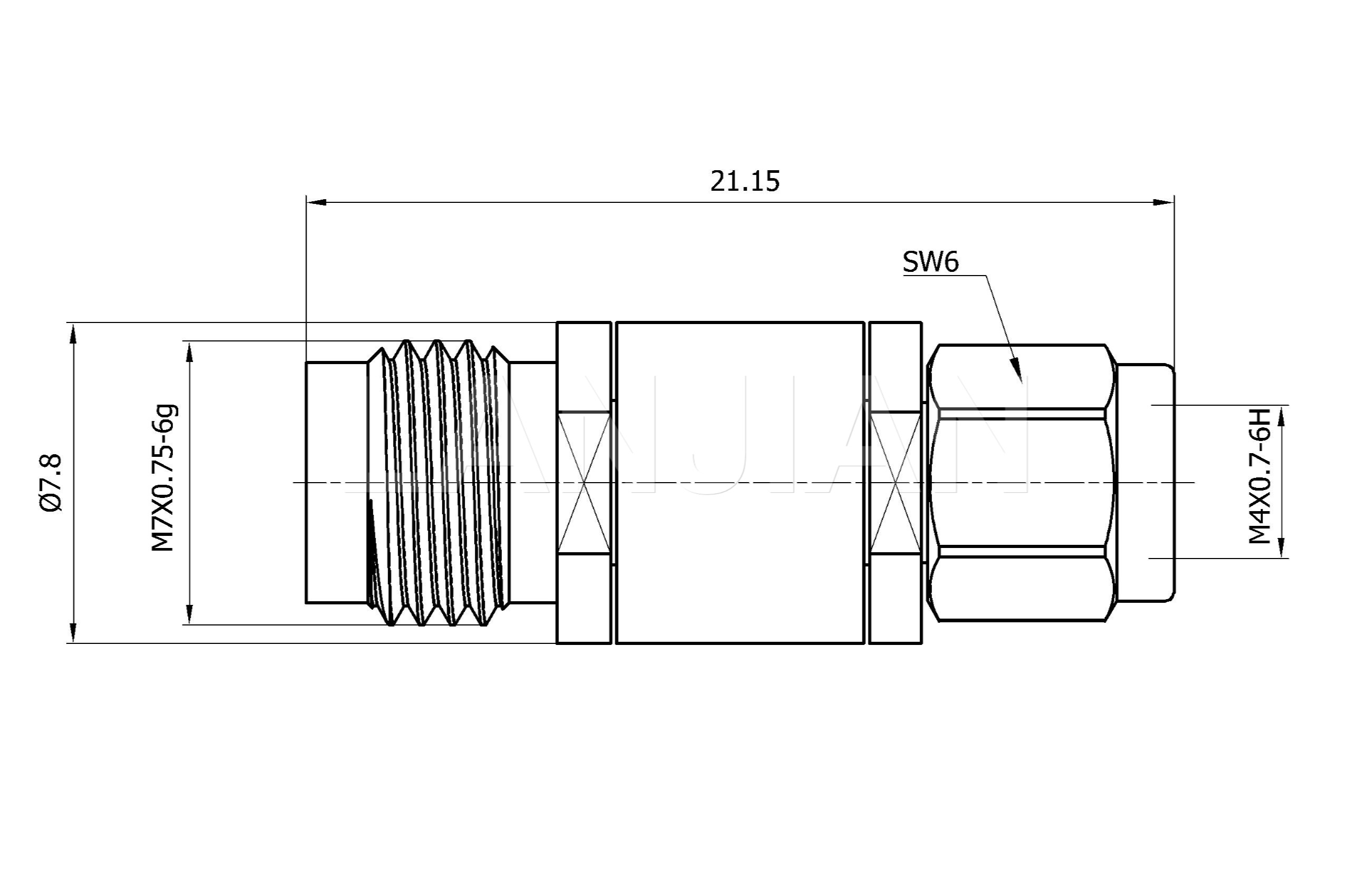 商品描述:1.0mm male to 1.85mm female straight adapter,65GHz