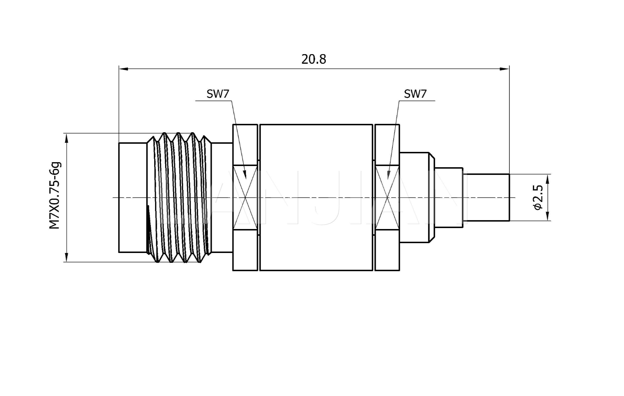 商品描述:1.85mm female to SMPS male straight adapter,65GHz