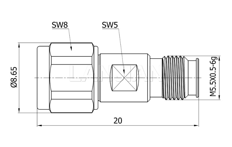 商品描述:1.35mm male to 1.35mm female adapter, 110GHz